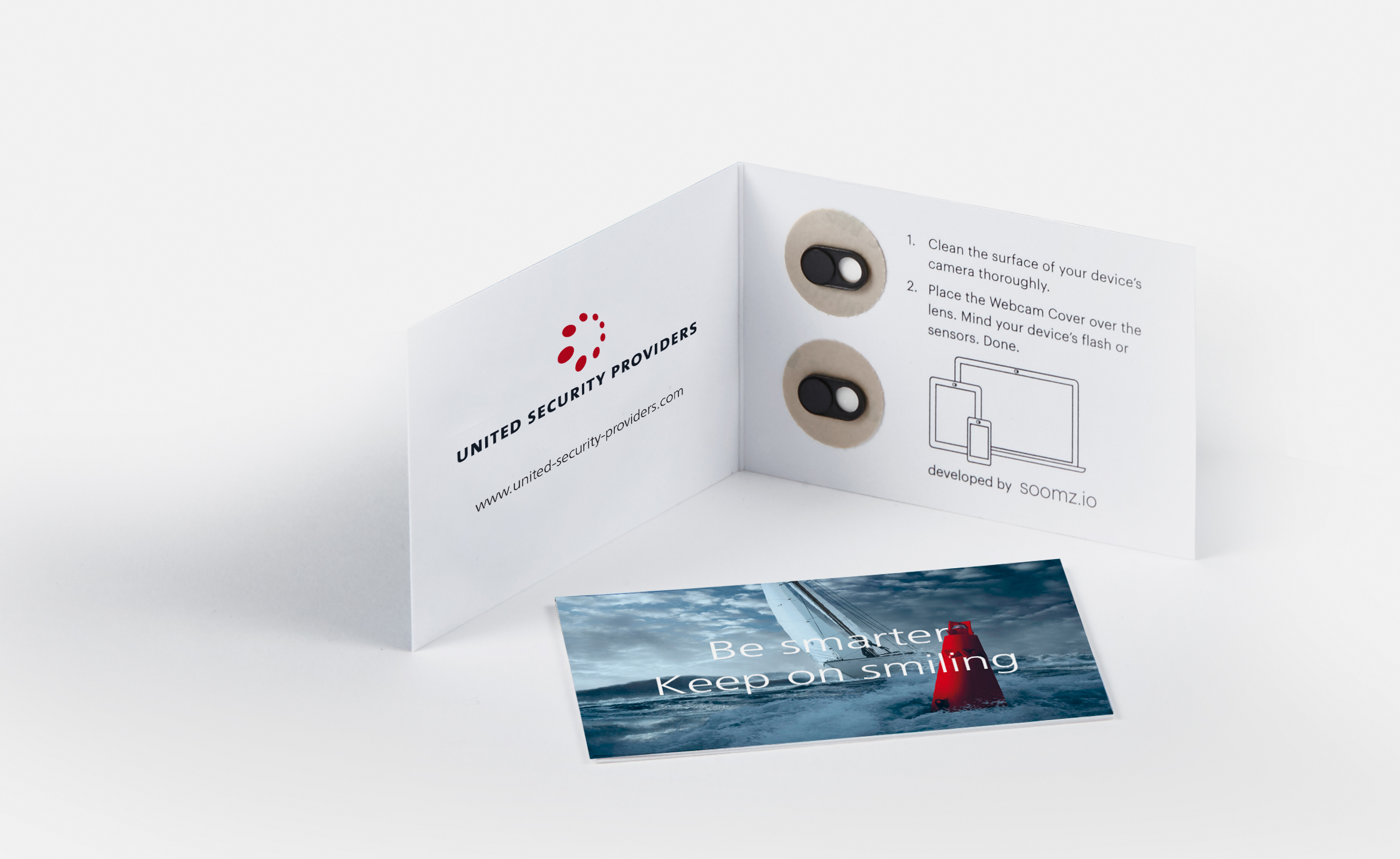 Ensured privacy and maximised visibility with these stylish metal black matt covers. With a smooth magnet glider they are self-adhesive and removable without residue. 12.5 x 7 x 0.7 mm small. And they make great gifts for clients and employees. With our customised branding service your logo can be placed on the cover giving your brand extra visibility every time someone flips open their laptop or their phone. Made in Europe. Smartly packed. Worldwide shipping.